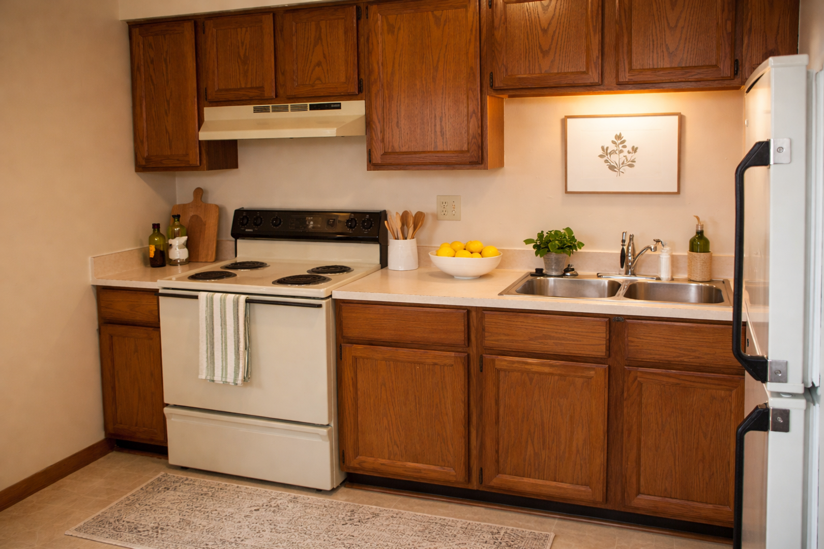 Oak Park Apartments offers several styles and floor plans including 1, 2 and 3 bedroom apartments to meet your budget and living needs. Affordably priced, our features include wall to wall carpeting, new high-efficiency A/C, and there is ample closet space throughout. The spacious kitchens are equipped with great cabinet space, range, and refrigerator. Many 2 bedroom styles include dishwashers. You may also rely on our covenant laundry facilities in the basements of all buildings that offer new front-load washers and dryers, not to mention free storage lockers. Garages and carports are available for your vehicle or just extra storage. Heat and water are included in your rent.